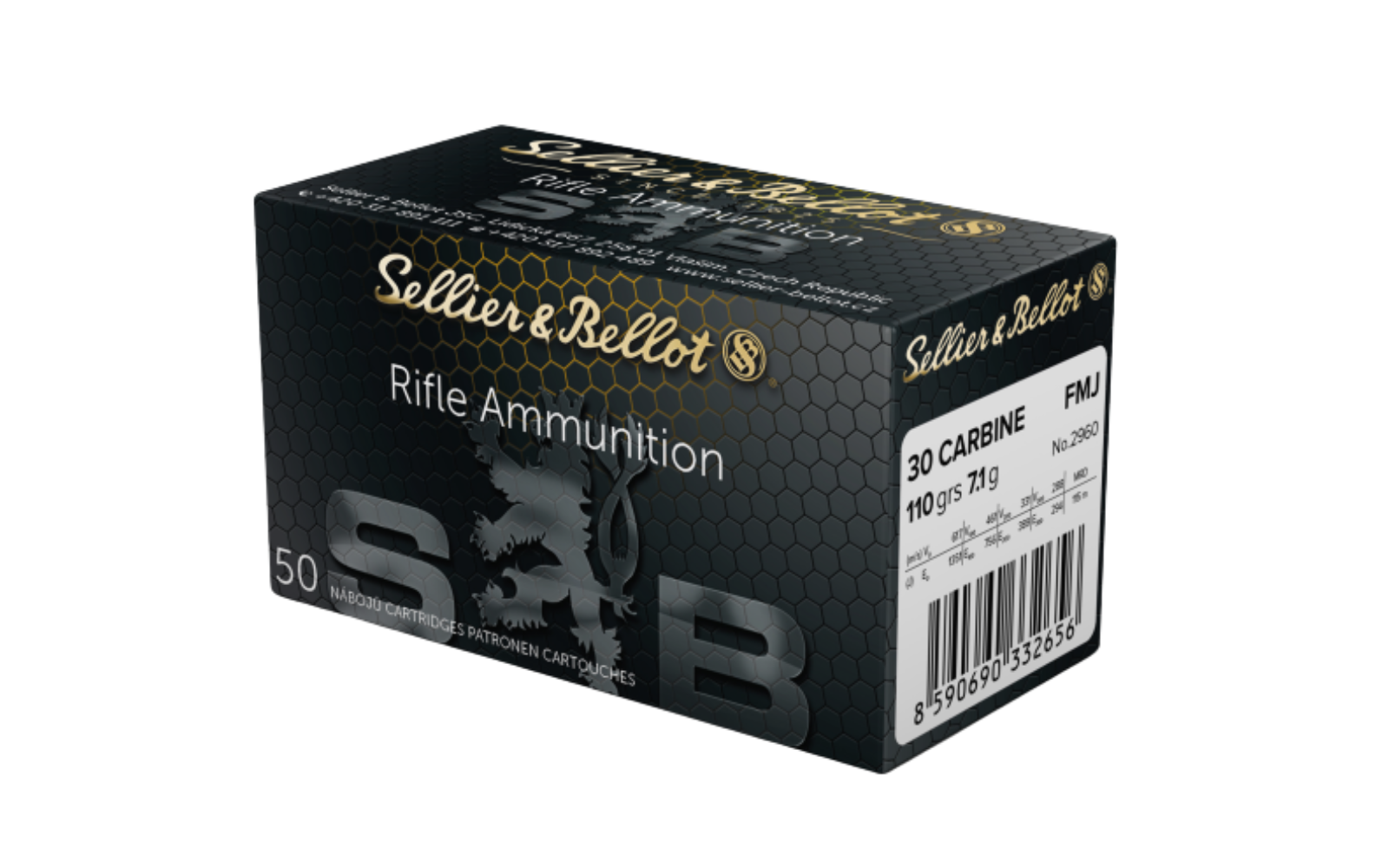 50 Schuss Sellier & Bellot .30 Carbine FMJ 110 grs Büchsenpatronen pro Box