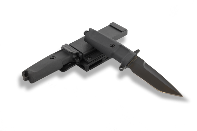 The lethality of the COL MOSCHIN knife in a compact size. It comes with hard belt sheath and BELT-CLIP. The sheath can be worn vertically, horizontally or obliquely (at a 45° angle).