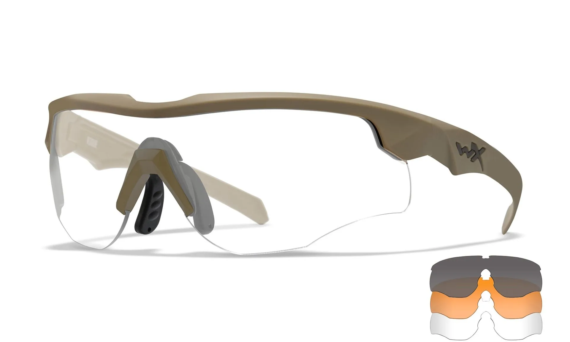 Schutzbrillen-Set WILEY X ROGUE COMM -Gläser: Grau/Klar/Helles Orange - Gestell: Matt Tarnfarbe