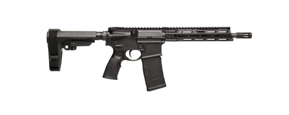 Die DDM4 V7P Pistol im AR15-Stil verfügt über einen 10,3-Zoll-Lauf und die MFR 9.0 M-LOK-Schiene für schnelle Handhabung, Präzision und Zuverlässigkeit und ist mit einer Vielzahl von Mündungshilfen und Schalldämpfern kompatibel. Die V7P verfügt über eine M-LOK-Befestigungstechnologie und ist mit dem SB Tactical SBA3 Pistolenstabilisierungsbügel mit 5 Verstellpositionen und integriertem, beidhändig bedienbarem QD-Drehpunkt ausgestattet. Der beidseitig verwendbare GRIP-N-RIP-Ladegriff ist für Links- und Rechtshänder geeignet. Diese Pistole ist mit dem ergonomischen Daniel Defense Pistolengriff mit integriertem Abzugsbügel und Soft-Touch-Ummantelung ausgestattet.
