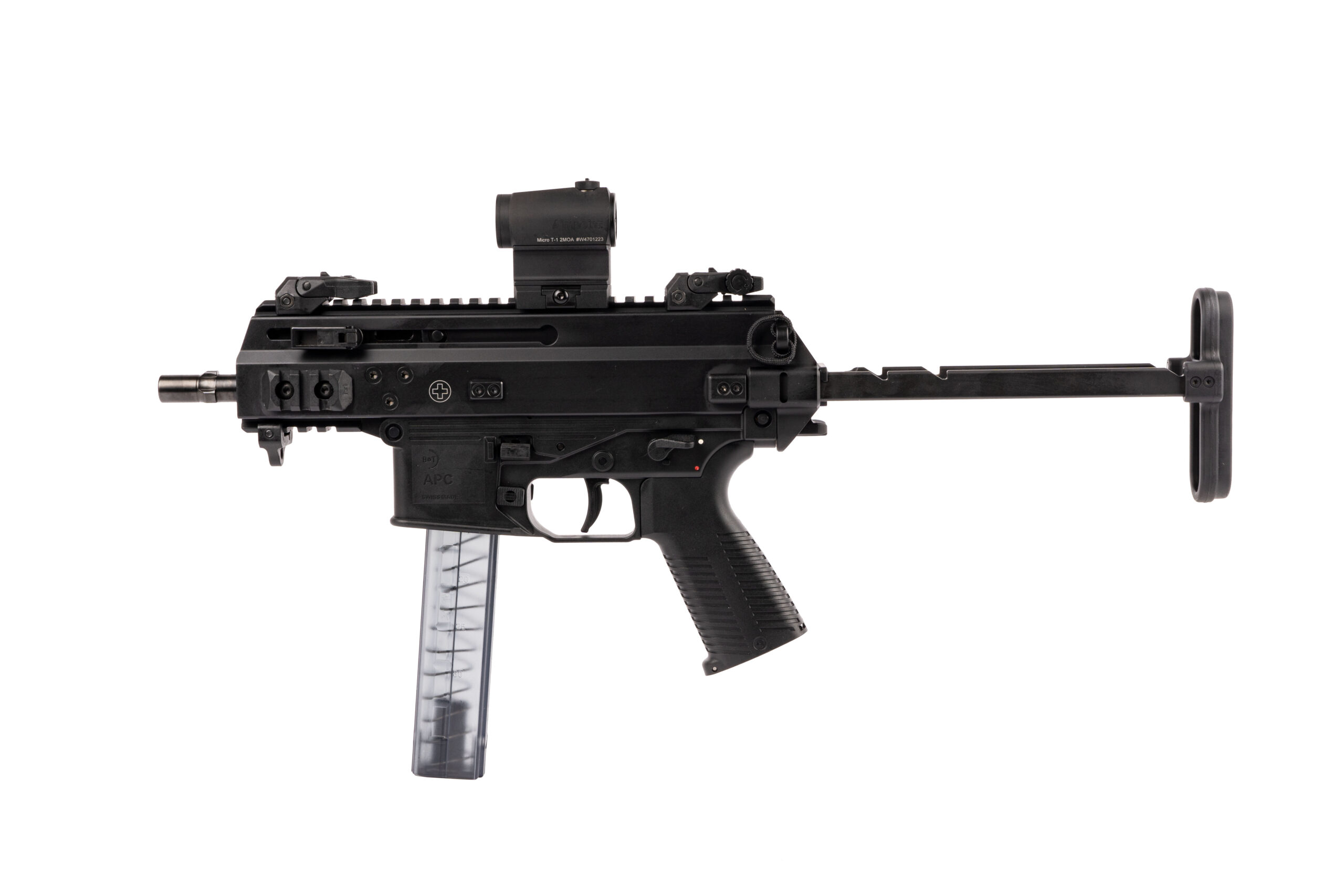 Das APC9 K PRO ist die nächste Evolutionsstufe der bewährten APC9 Familie. Mit den nicht mitlaufenden beidseitigen Spanngriffen, sowie seinen diversen anderen Eigenschaften, erfüllt das APC9 K PRO die heutigen Anforderungen der Polizei und ist somit auch für Sportschützen eine attraktive Waffe. Die kompakte K-Version ist durch den kürzeren Lauf besonders führig.