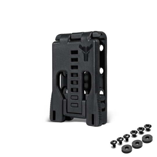 Das Blade-Tech Tek-Lok ist der Goldstandard in der Branche, wenn es um Gürtelbefestigungslösungen geht. Innovativ und vielseitig – das Tek-Lok ist für Gürtel mit einer Breite von bis zu 2,25 Zoll (5,7 cm) geeignet und bietet mit 9 Befestigungslöchern zahlreiche Montagemöglichkeiten für Scheiden, Holster und vieles mehr.