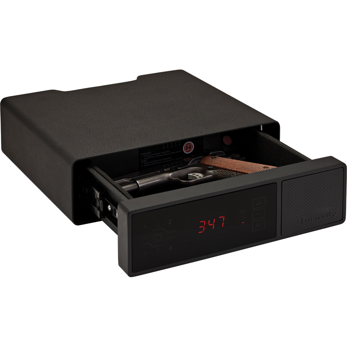 Hornady® stellt den perfekten Begleiter für den Nachttisch vor. Mit dem RAPiD® Safe Night Guard® ist Ihre Handfeuerwaffe so nah wie Ihr Nachttisch. Die RFID-Technologie ermöglicht den schnellsten und zuverlässigsten Zugriff auf Ihre Waffe und bietet gleichzeitig unübertroffene Sicherheit vor unbefugten Benutzern. Außerdem bietet der Night Guard® die zusätzlichen Funktionen einer Uhr und eines USB-Ladeanschlusses.